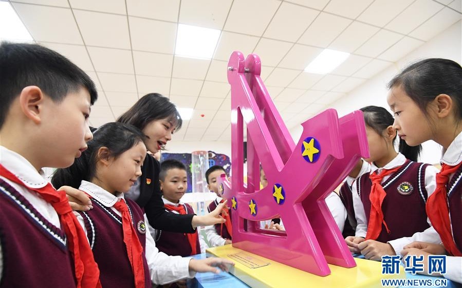 ▲资料图:贵州省贵阳市南明区花果园第三小学的老师在校园科技馆内指导学生体验“发电锚”。图/新华社发